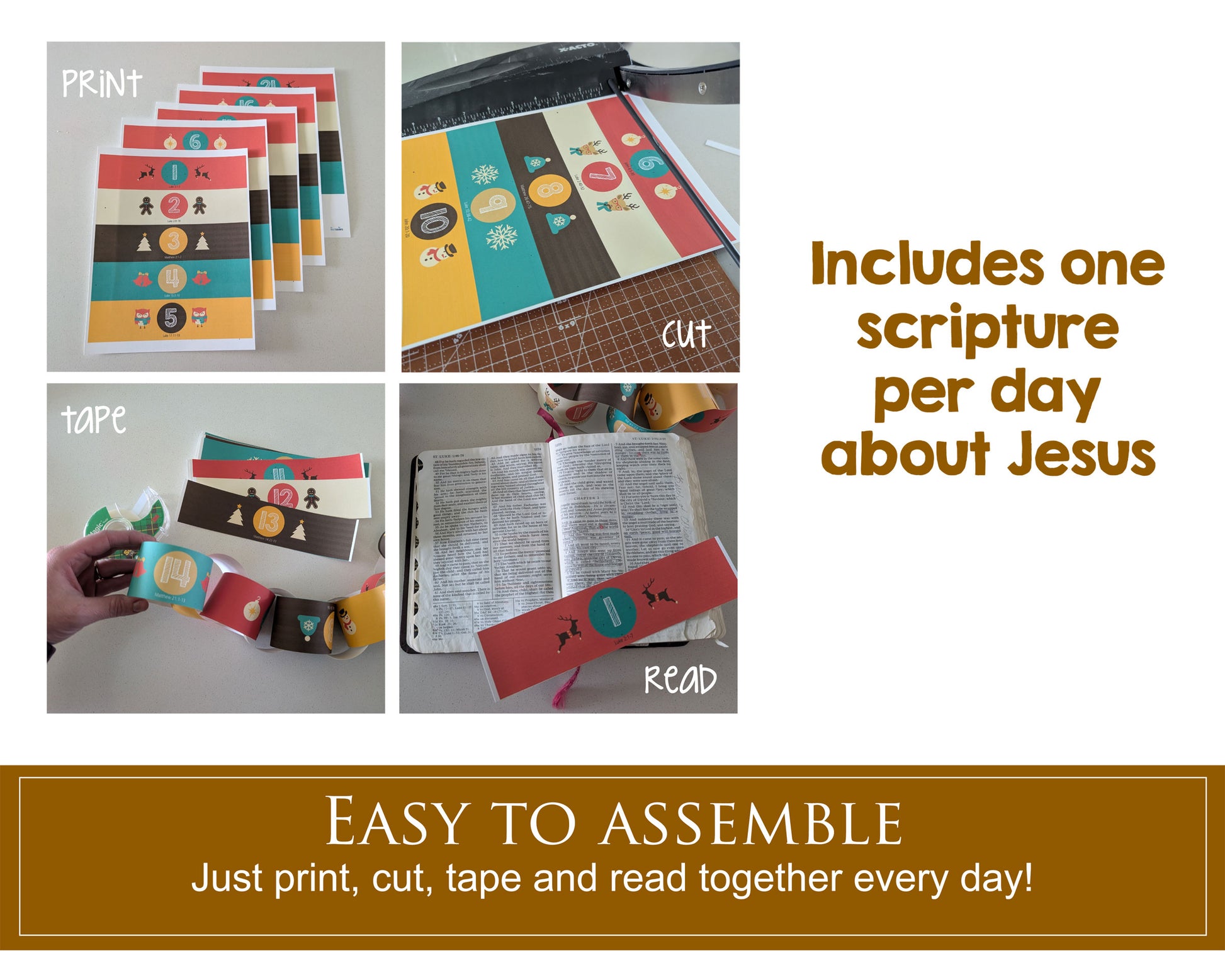 Center your Christmas around Jesus Christ with this LDS Christmas paper chain countdown with scriptures for every day. Your purchase includes five 8.5x11 PDF high-quality pages that you can print on your home computer or email to your local copy store. Just print, cut, tape and display in your home.